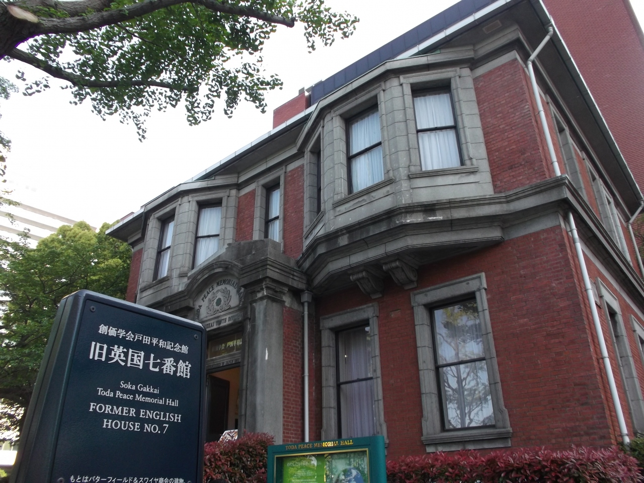 外国商館唯一の現存建物で横浜市歴史的建造物指定されています。戸田平和記念館の標識があるのは、現在創価学会の施設だからです(戸田2代会長の原水爆禁止宣言を記念したとある=資料館)。