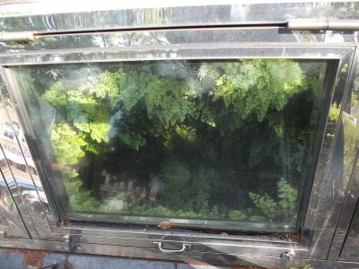 見た目、廃家のような風貌。内部立ち入りできません。アーチ型透しガラス窓から中が覗けます。レンガ造りの構造が垣間見ることができます。