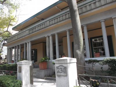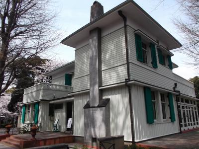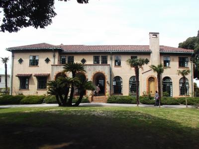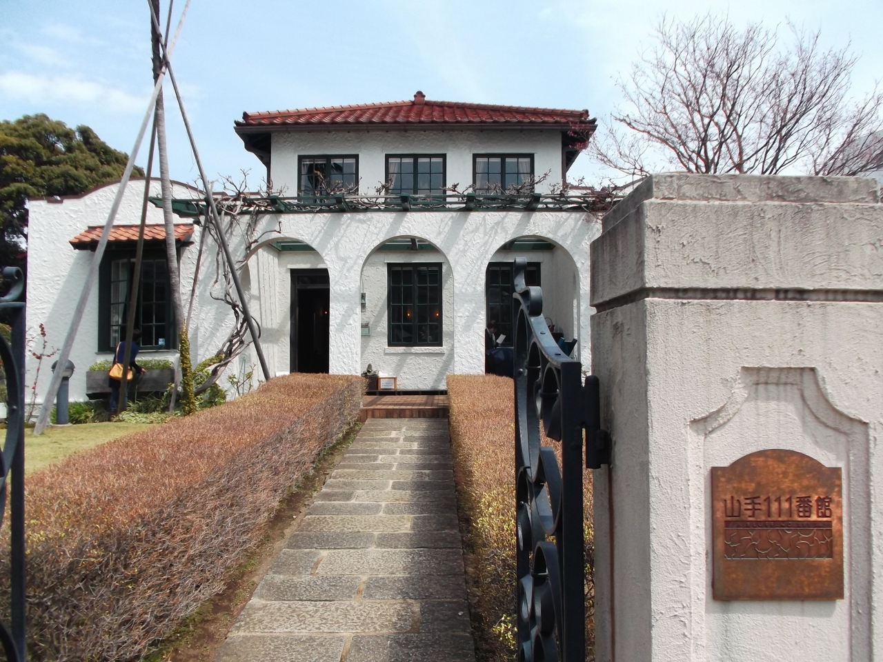 赤瓦と白壁のスパニッシュスタイルの洋館、英国人ラフィンの旧邸宅。港の見える丘公園イギリス山地区の道路沿いにあります。横浜市の保存公開建築物ですので自由見学できます。