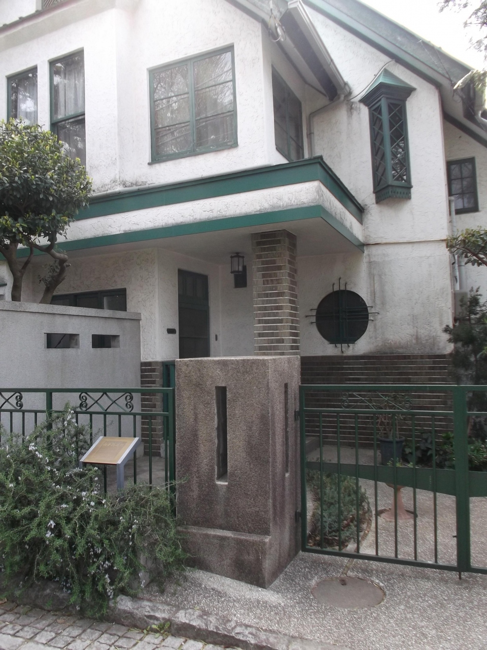 エリスマン邸とベーリックホールの間の小路、元町公園沿いの山手の住宅街を下り途中を左折、小さい標識に導かれて着いた先は民家。ちょっとわかりずらい立地です(突き当たりの家と間違える方もいます。突き当たりの右奥です)。