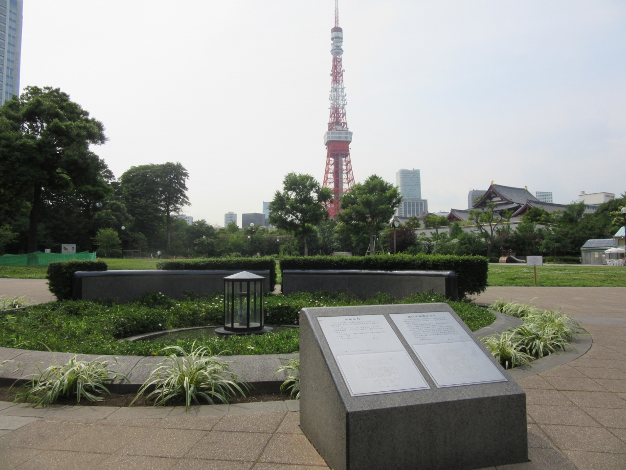増上寺前の芝公園内ペルリ提督の像の向かい位置にあります。
