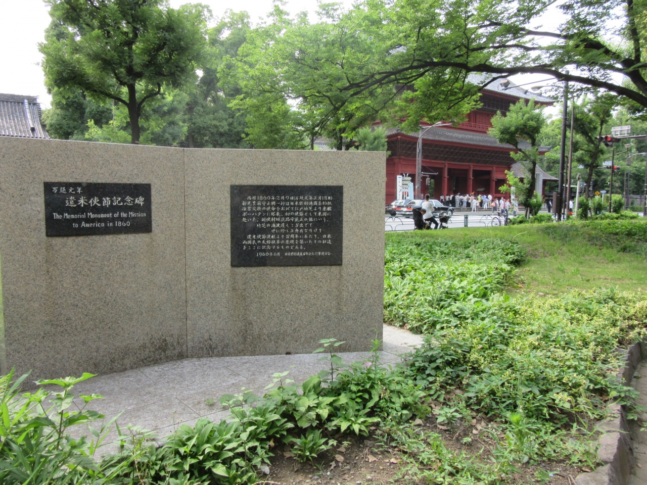 1860年竹芝より使節団がポーハンタ号に搭乗と記されており、100周年にあたる1960年6月に碑が建てられたものです。幕末・開国の背景、徳川将軍家の息吹がこの場所に息づいてるようです。- 旅行時期