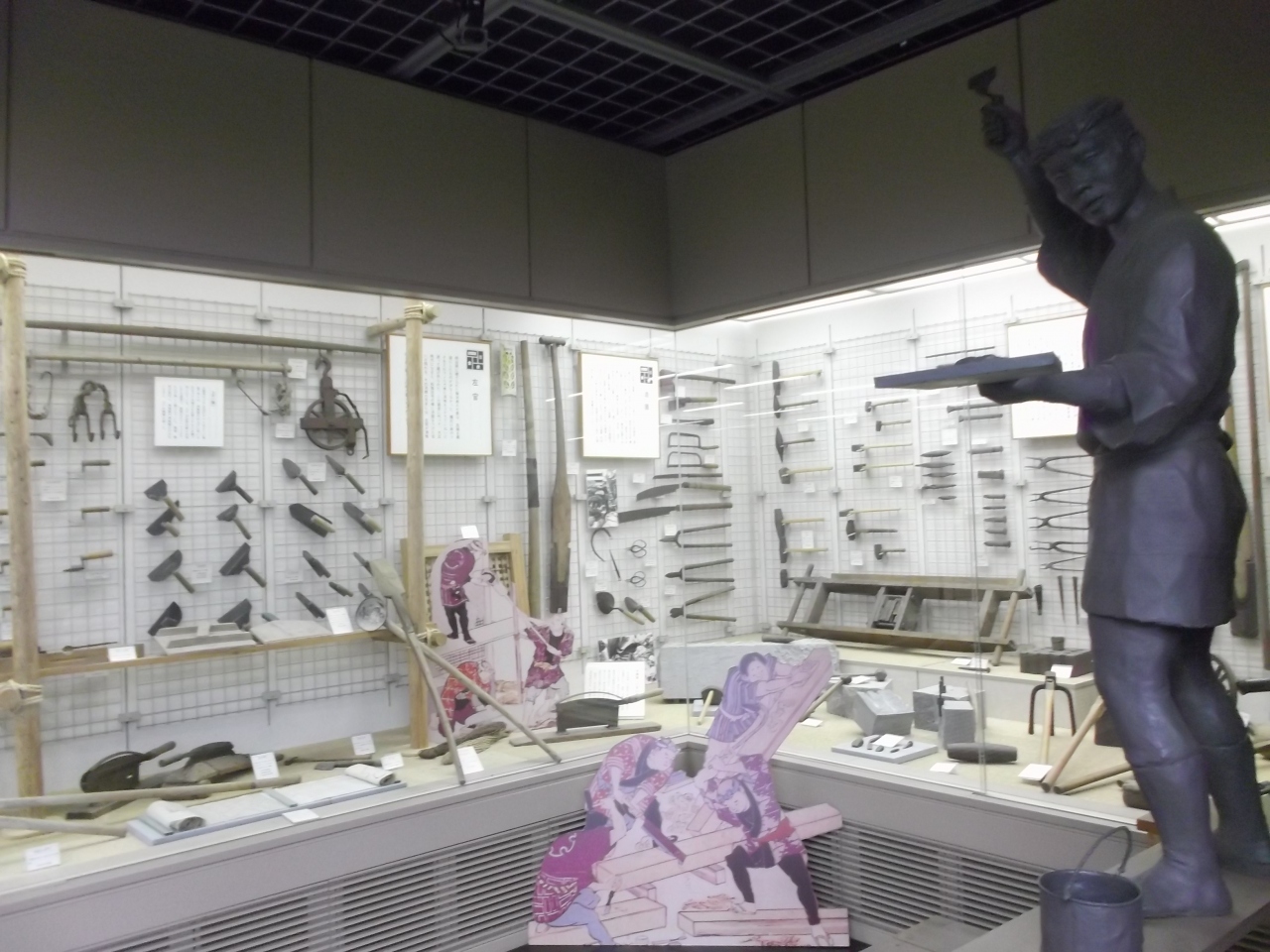 横浜開港ののちの当時の職人達の技能文化を道具展示等を目で見て、イベント技能職の実演、そして参加体験を通して触れ合うところ。例えば展示コーナーにはクリーニング・洋服仕立て等の職人文化の発達がわかるようになっており、関心ある方には貴重な空間です。