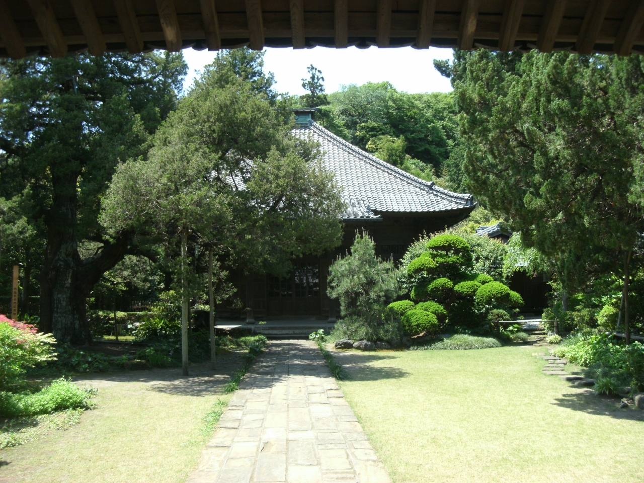 JR横須賀線で大船駅過ぎ、車窓左手に見える茅葺き屋根の山門のお寺がココ。
