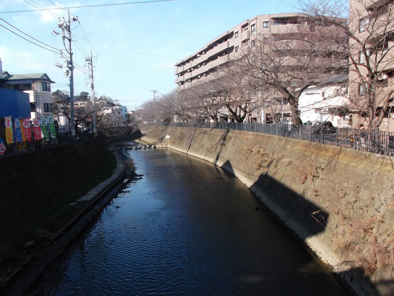 ここ、大岡川の弘明寺かんのん通りにかかる観音橋・さくら橋。川沿いに桜並木が続く・・日ノ出町界隈までサクラ路になるのでしょう。この日も川岸の散策路を散歩する人いましたヨ。- 旅行時期
