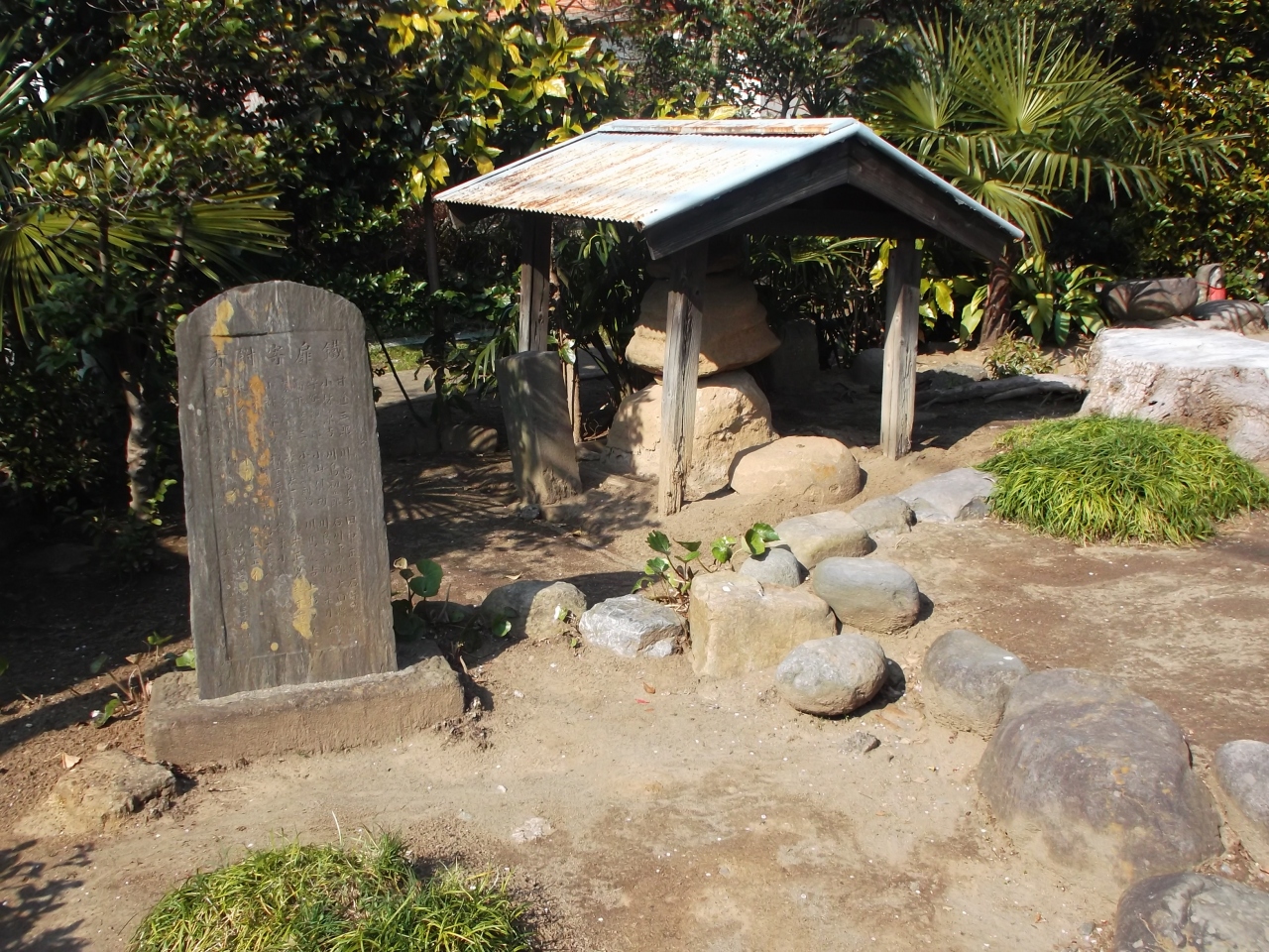 また、ここには名優(松竹でしたか)の故・笠智衆さんが眠っています。境内にはその他忠魂碑(東郷平八郎書)、裏山崖に亀の窟という探訪者には見所があります。- 旅行時期