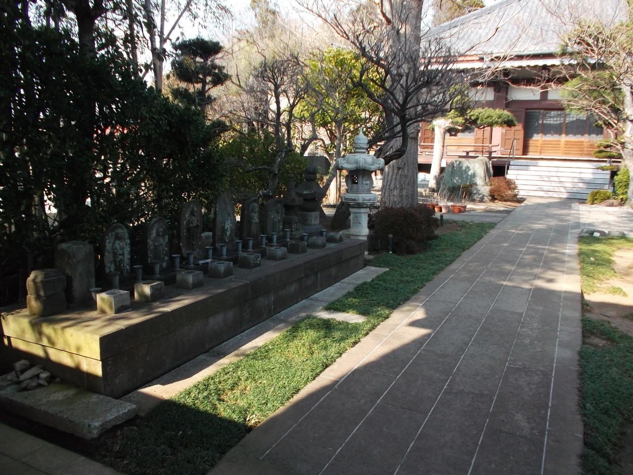 裏後方は樹木覆い熊野神社が鎮座、山肌が迫り谷戸の奥に佇んでいる趣です。周り近所は住宅街なのに陽当りが良く明るく、庭木など手入れが行き届いているので落ち着ける空間となっています。