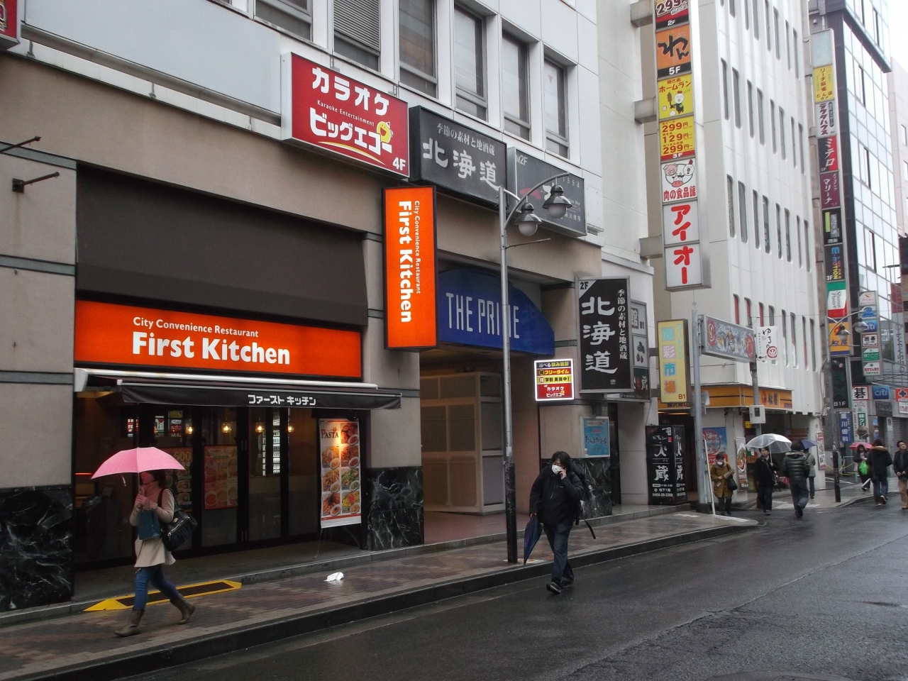 ここはJR/小田急/江ノ電の藤沢駅南口前のダイヤモンドビルなどがある南銀座一番街のザ・ブライムビル1階にあるファーストキッチンです(写真)。