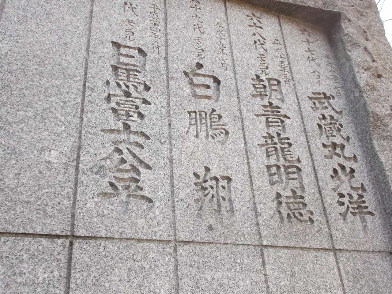 参道には銅像(伊能忠敬)や石碑(大関碑、他)、江戸祭りで有名な日本一の黄金神輿が蔵められている神輿庫があります。また、境内にある大相撲ゆかりの横綱力士碑は名所になっています。