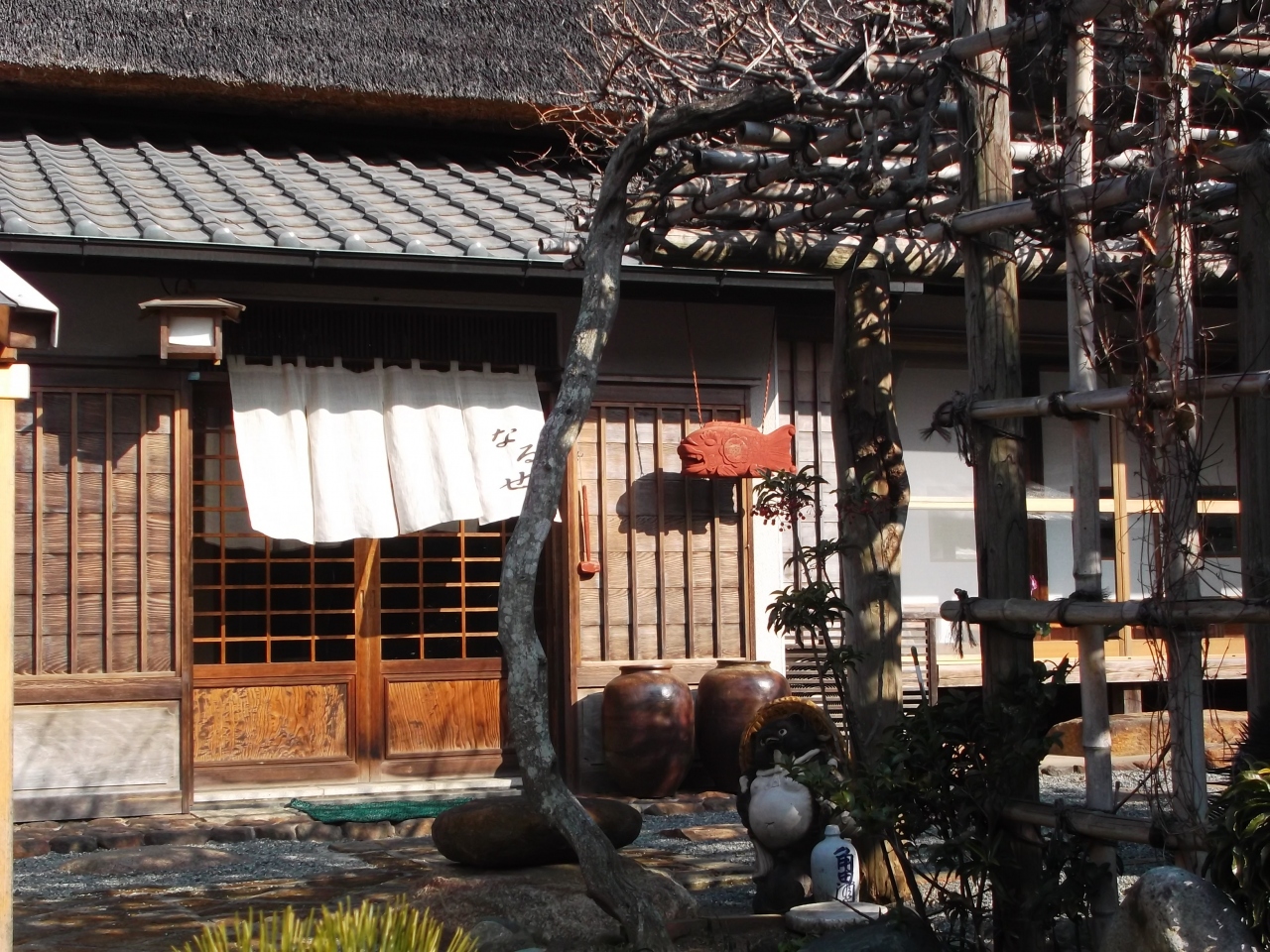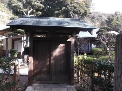 ご当地散策の折、茅葺き屋根の農家の御宅発見、門のところに鎌倉市景観重要建造物のプレートが付いていました。その古民家が母屋でしょうか、玄関にノレンが・・。聞いたところ完全予約制(4名様から会席和食)、よって食事はしておりません。