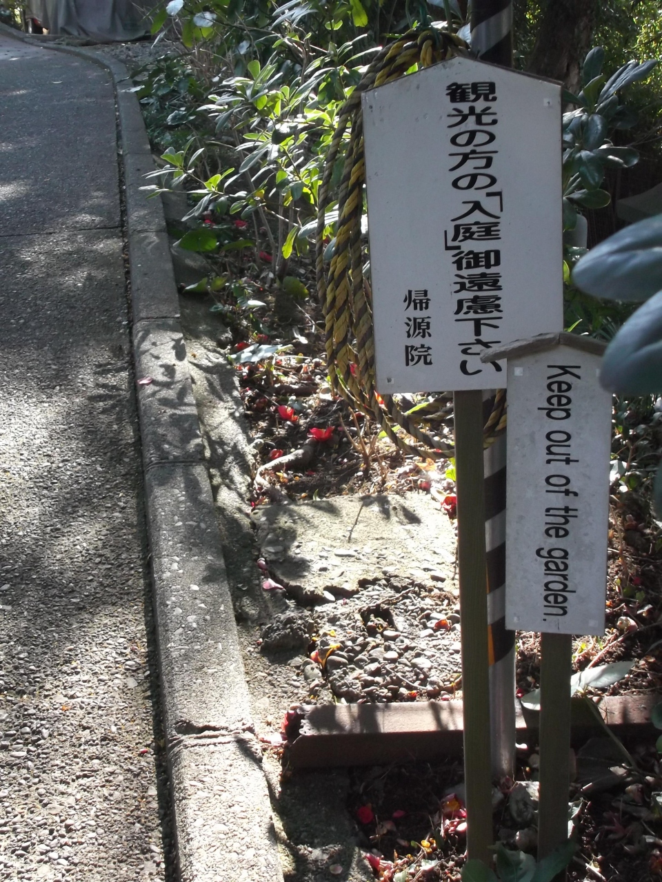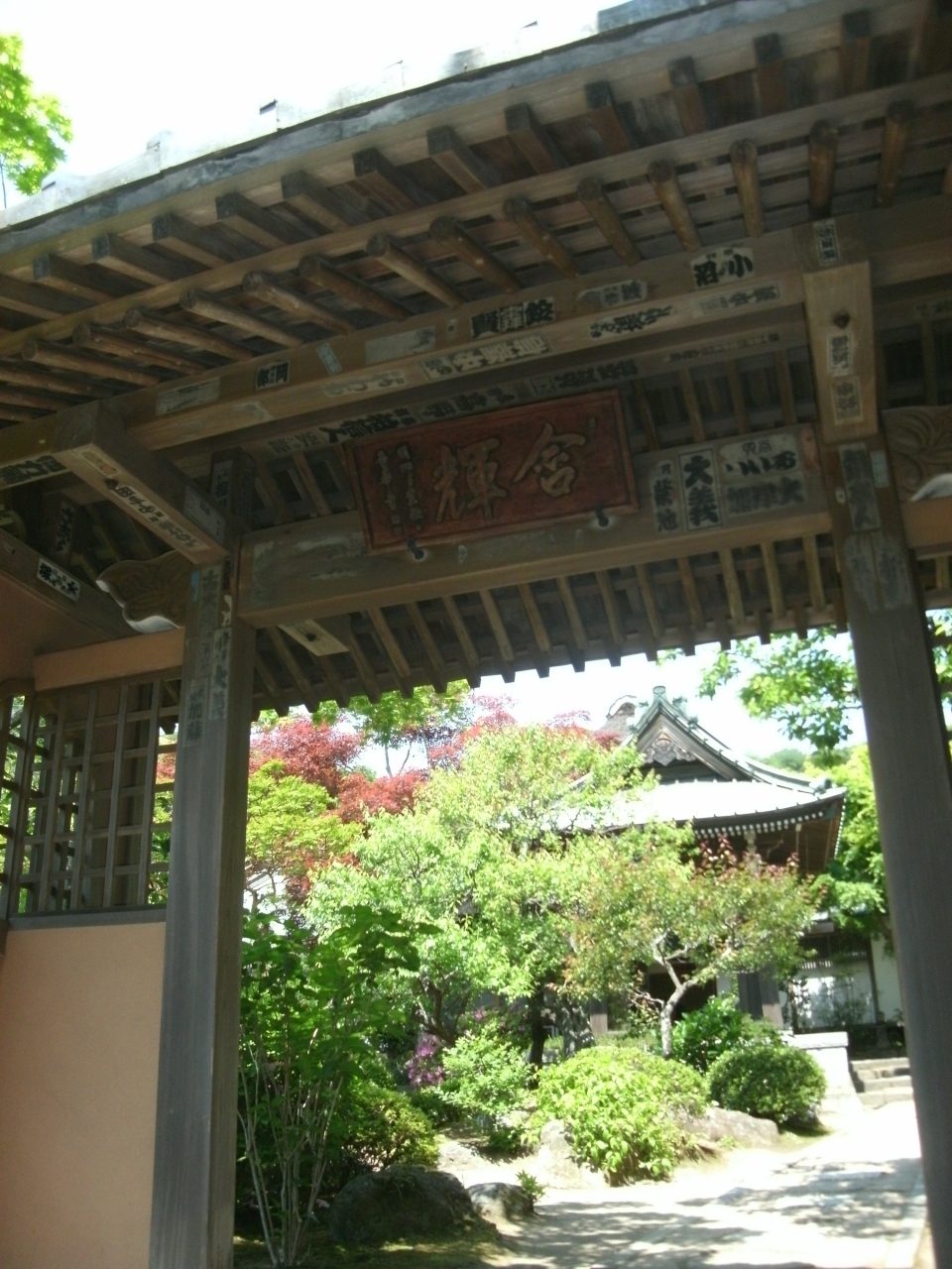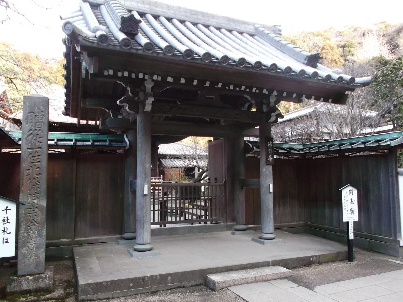 夏目漱石が「門」で描いたのが、円覚寺の山門。漱石といえばこの山門から右手奥の塔頭・帰源院に止宿(明治27年暮から28年に参禅)したとあります。文学親父でなくともひとくさりしたいところ。重厚な二重門は立派、県の重要文化財です。天明5年(1785)に再建で「円覚寺興聖禅寺」の額字は伏見上皇の勅筆。楼上には十一面観音、十六羅漢像などが安置するとあります。
