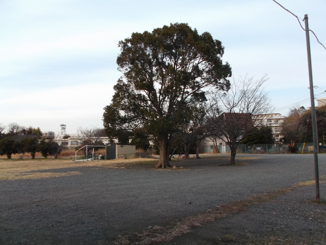 湘南モノレールの湘南町屋と湘南深沢の間、だだっ広い空地がある・・旧JR大船工場跡地(野球グラウンド・深沢子ども会館あり)。富士塚小学校入口交差点から深沢住宅(団地)に入る、ここら辺りのはずということで探し廻るとフェンスに囲まれた中に小山・こんもりした森が出現・・異様だ。多分ココ。でも標識・看板類掲示物ありません。よくわかりません。