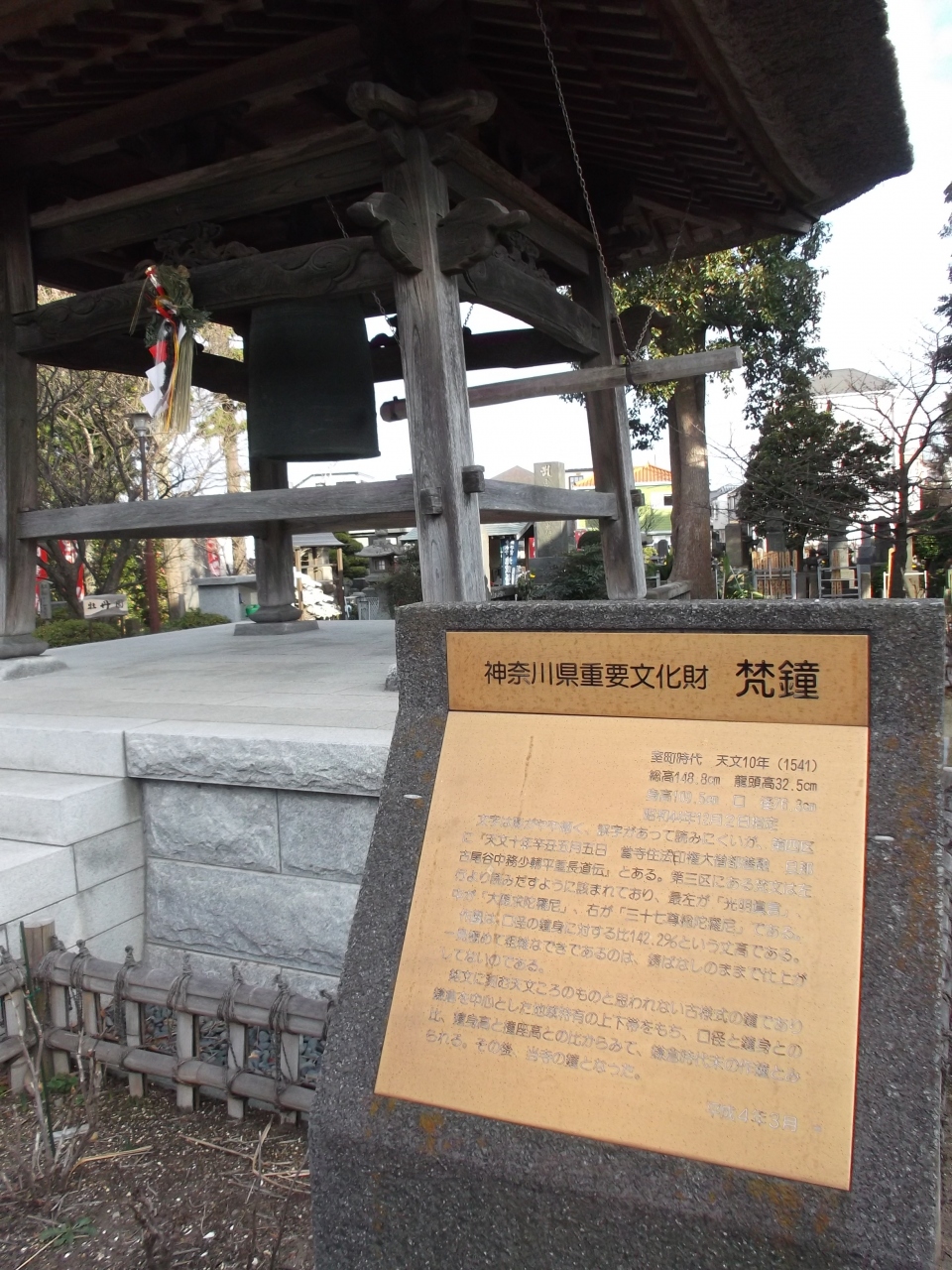 貴重な文化財も見落とせない。茅葺き屋根の鐘楼に吊るされている鎌倉期の梵鐘は県の重要文化財、参道際の地蔵堂には市の文化財の地蔵菩薩が安置されています。