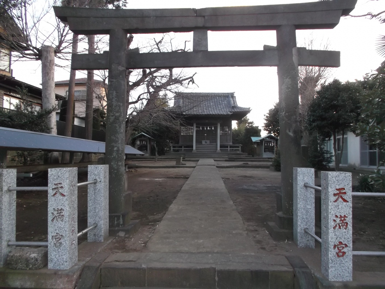 この辺り住宅街で境内には町内会館があります。1月25日例大祭の張り紙がありました。