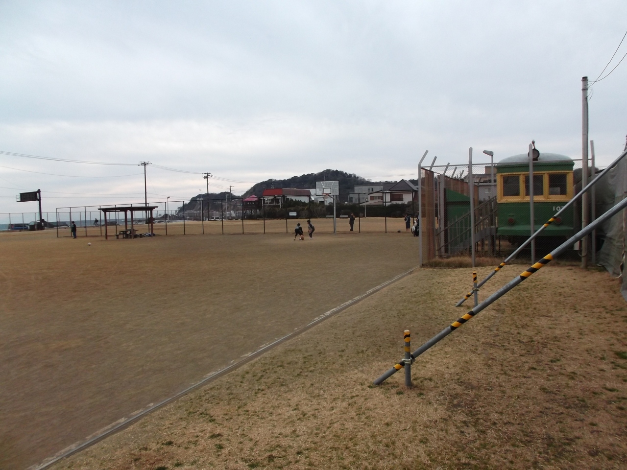 道隔てた運動場では地元のこどもグループの元気な声が。この公園の一角にクチコミでも紹介されていた江ノ電の旧車両ダンコロが展示公開されています。- 旅行時期