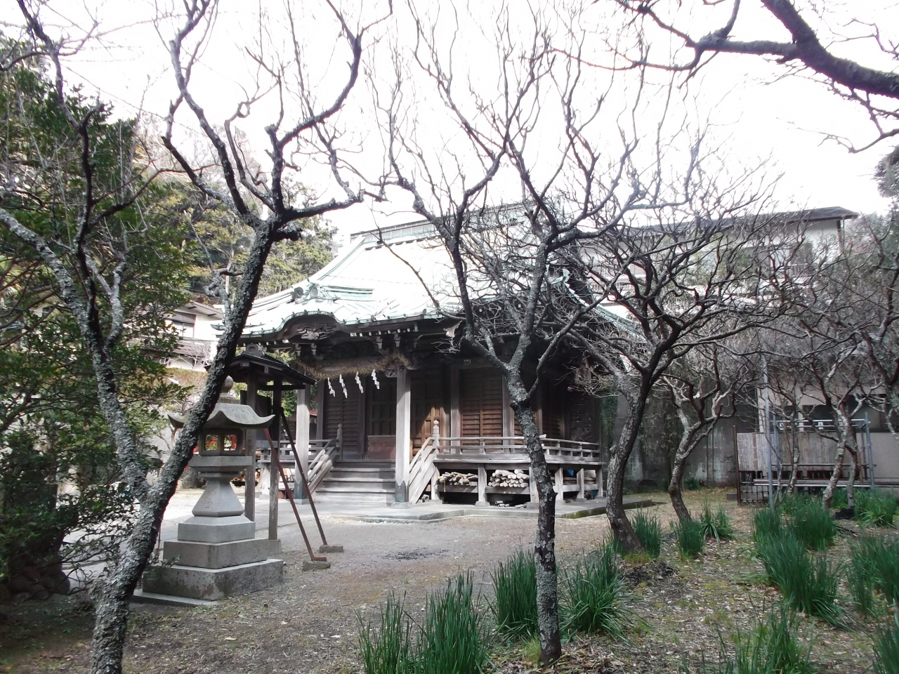有名な観光寺極楽寺に程近い(徒歩3~4分)ところですが、訪れる観光客旅行者は少ない(いないと言っても)。道しるべの石標に八雲神社・諏訪神社も刻まれているが、合祀されているからです。境内には末社境内社の石碑群があります。社殿前の庭には小さい梅園があります。訪れた1月下旬には蕾がみられました。開花のころに訪ねたいですね。- 旅行時期