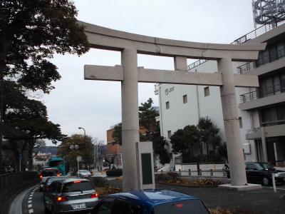 鎌倉観光最大スポット・鶴岡八幡宮の大鳥居の一番手、若宮大路は由比ヶ浜の海から一直線、一番の海側に白い御影石の大鳥居。これが一の鳥居です。高さ8・5メートルあるという、大通りの悠然と建っている様は見応えあります。中心部は空路ですが専用車道ですので、見学は両サイドの歩道からになります。