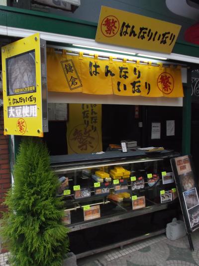 鎌倉土産で注目されてる、はんなりいなり。昔からお稲荷さん(寿司)で知られています。最近は観光向けにお土産食べ歩き用が商品化されています。ごぼう・しらす入りの稲荷寿司、ミルフィールなども。お店も小町本店にはイートインあり。