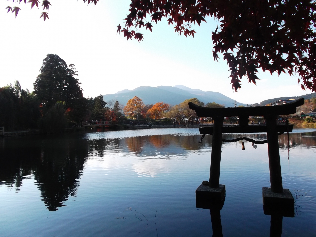 古から地元で親しまれている六所宮、木綿(山)神社とも言われている大きな神社です。かってこの地が湖で盆地に変えた伝説があるところ。観光で賑わう由布院エリアから離れていますが、観光辻馬車が立ち寄るスポットです。