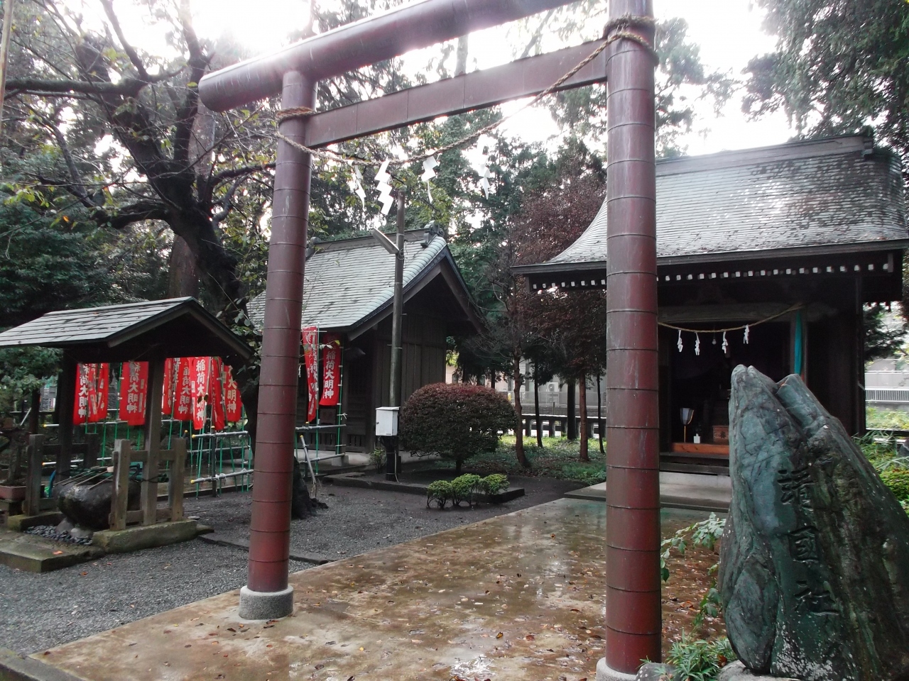 境内各所に末社や文化史跡が見られます。本殿鳥居付近には第六天大明神・堀田稲荷大明神、子神社・大鷲神社、境内入口付近に和嶋弁財天社、もうひとつの入口際に浅間神社・佐々木神社・川崎天満宮・白山神社の小社(祠)があり祀られています。