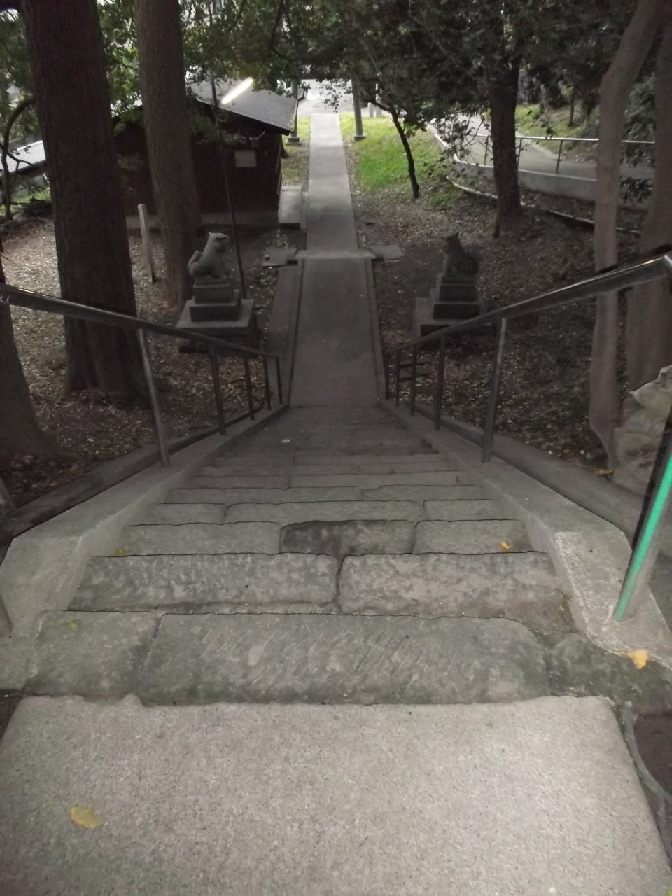 森の中・高台という感じ、急な石段(脇に舗装スロープ・車道?あり)登り詰めると拝殿現れます。境内には石塔が集められて並んでいます。とても静寂なところですが、ここからのロケーションはよくありません。近隣住宅の窓・ベランダが丸見えだったりしています。- 旅行時期