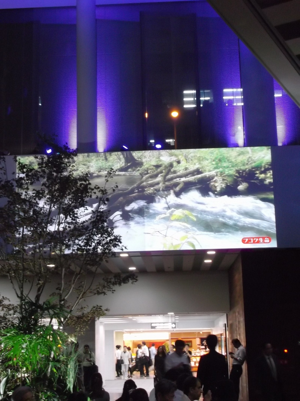 地下鉄東梅田駅前のフコク生命ビル・・B2階から4階の吹き抜け空間、ビル中ですが陽が差し込み森のイメージです。大きなスクリーンには緑・新鮮な映像が映りちょっと癒される雰囲気ありますね。地下街歩きでひとやすみにいい。- 旅行時期