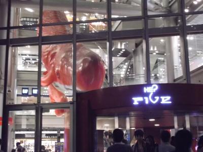 入口入ると、どでかいクジラ?が垂れ下がってる。なんじゃコレ。
