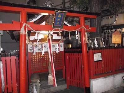梅田ユニクロのビルと高架の間にひっそりとあります。赤い鳥居、小さなお社の神社。