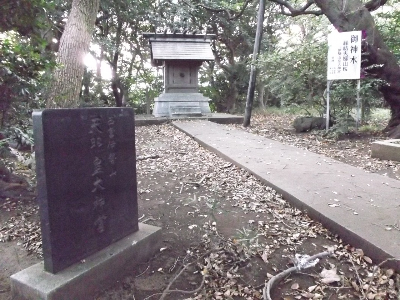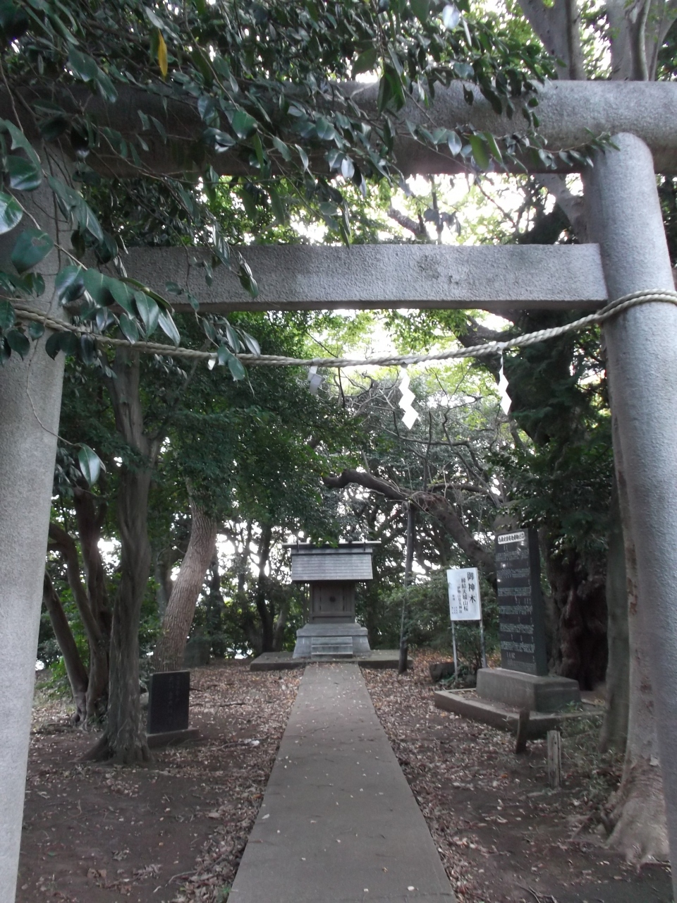 遊行寺山域の北西部にある翠ヶ丘公園の奥の森の中に佇んでいます。鳥居と祠の神社で社殿はありません。社号標・寄進者碑が小さいながら建っています。ここは名前が示す如くお伊勢さんです。