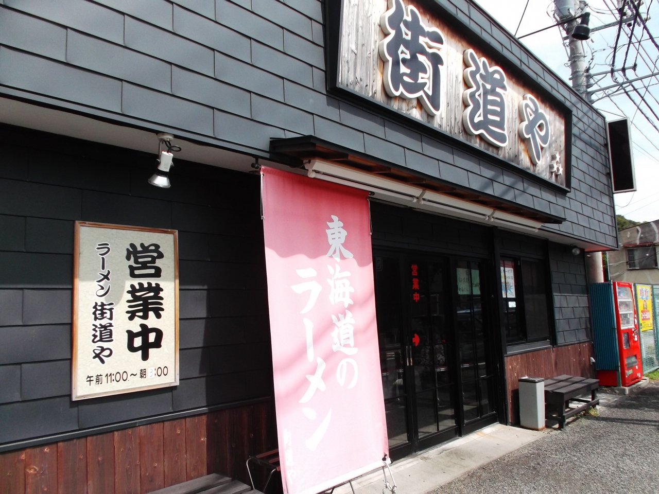藤沢5丁目、43号線沿い・引地川橋に近い。大きな看板で「街道や」、東海道ラーメンのキャチ文字が目を引きます。