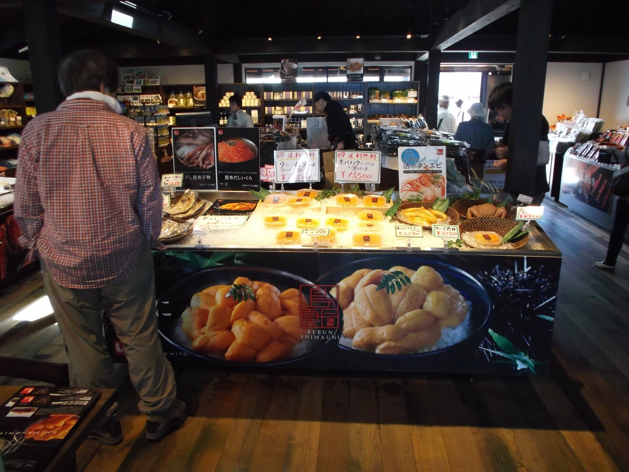 茶色い三角形屋根の平屋です。最果てのお店ですが、ここ本店です。新千歳空港国内線ターミナルビル2階にショップが出店しています(ネットショップあり)。空路帰路の方はそこでお買物できますが、この最果ての地での雰囲気はここだけでしょう。ウニの試食はできませんでしたが、重ね昆布巻きとかの試食させていただきました。