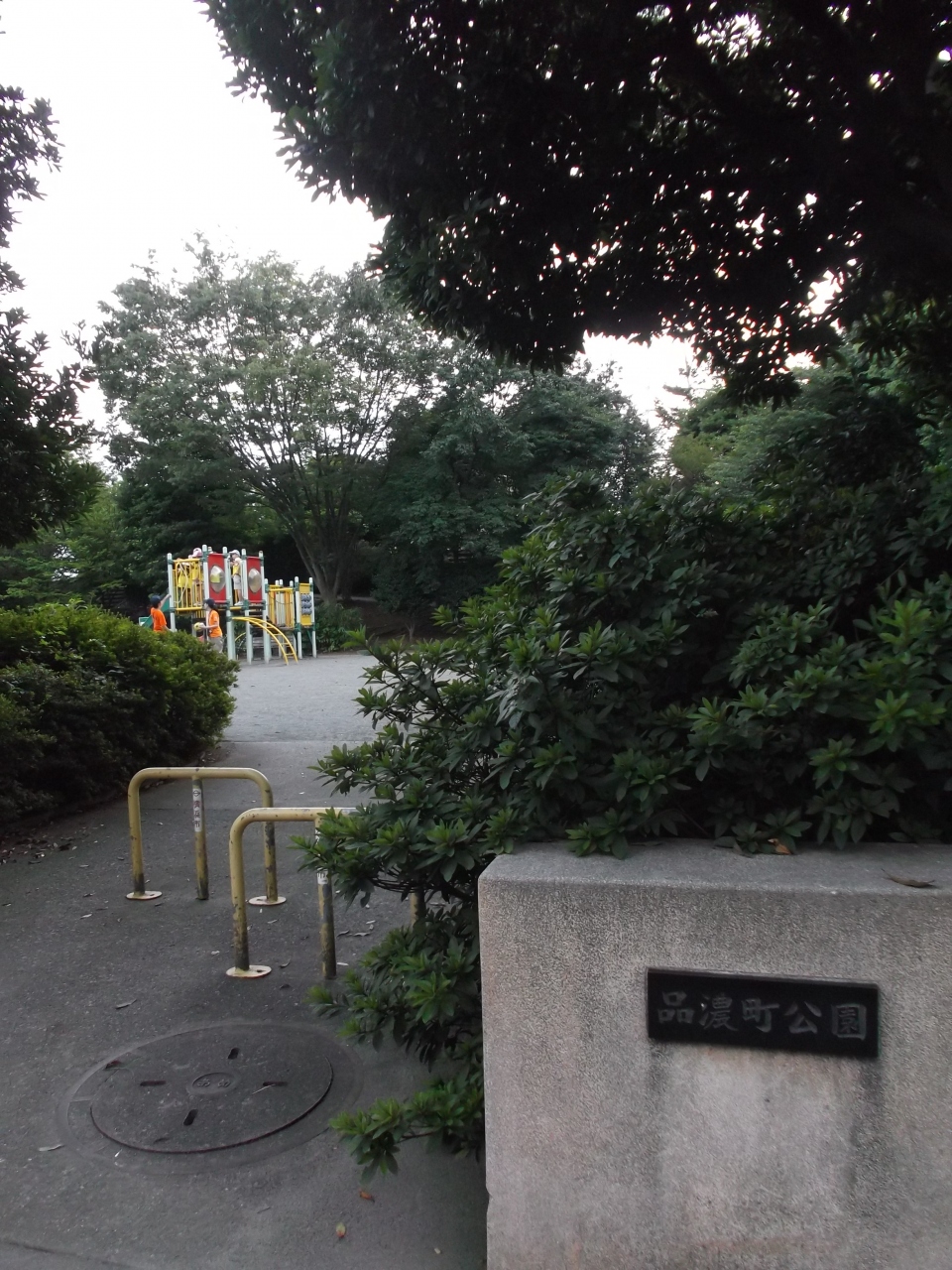 品濃町にあります。郵便局の向かい側、マンション・ビル、住宅群の中ですが緑あり落ち着いています。子供向けの遊具設備があり近隣住人の井戸端会議・いこいの場になっているようです。