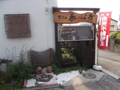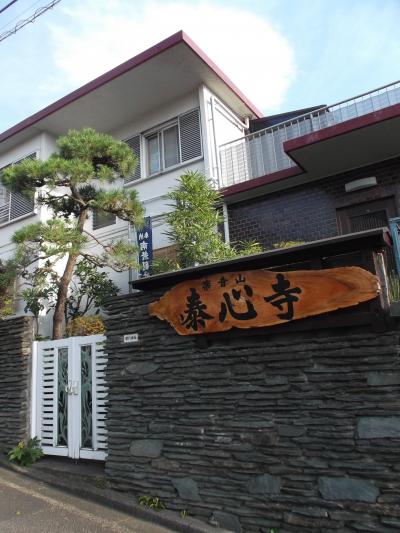 全くの住宅街、民家です。泰心寺の寺額がないと気付きません。地図には掲載されています。ガレージ横から裏手に、庭が境内になるのでしょうか。ガレージ脇には小さなお地蔵さまのような置物が沢山置かれていました。