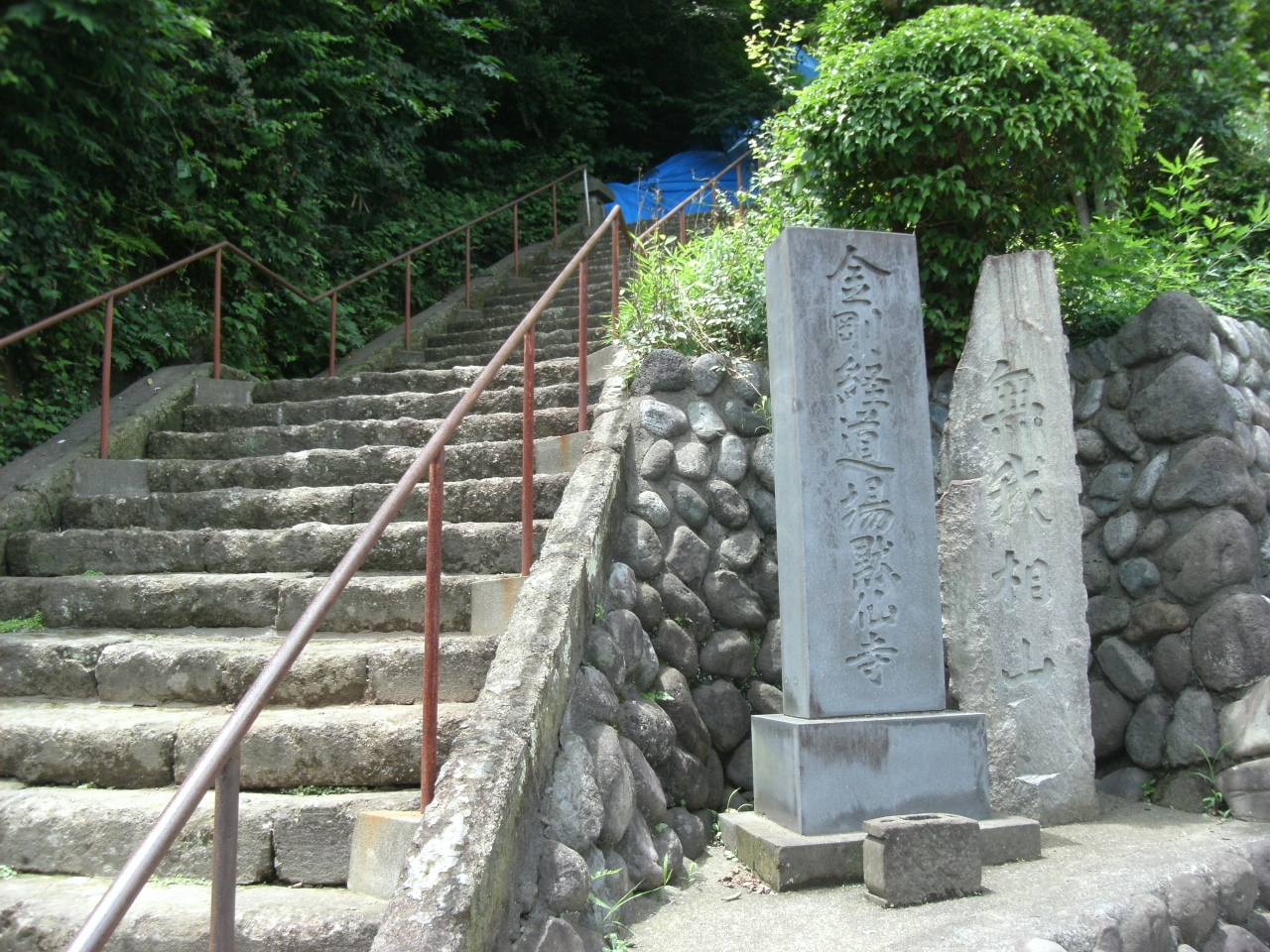 無我相山・黙仙寺、曹洞宗です。明治以降のお寺です。山の中にあるお寺ですので本堂まで石段の長い参道、ここらあたりは急斜面崖地ですので危険の貼紙も・・足元は非常に悪い。人影のないとても静かなお寺です。