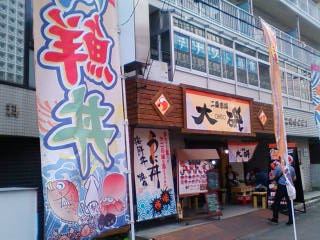 早朝、二条市場辺り・路地を散策していましたら、大きな海鮮どんぶりの看板やノボリのお店。その前にガイドブック抱えた人たちが屯していました。