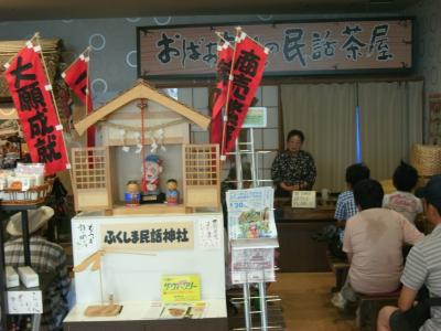 ご当地の昔話を福島のおばちゃん(語り部さん)が、舞台の上で聞かせてくれます。方言豊かにやさしい語りがジーンときます。これ民芸ステージというそうです。毎日3回60分あります。