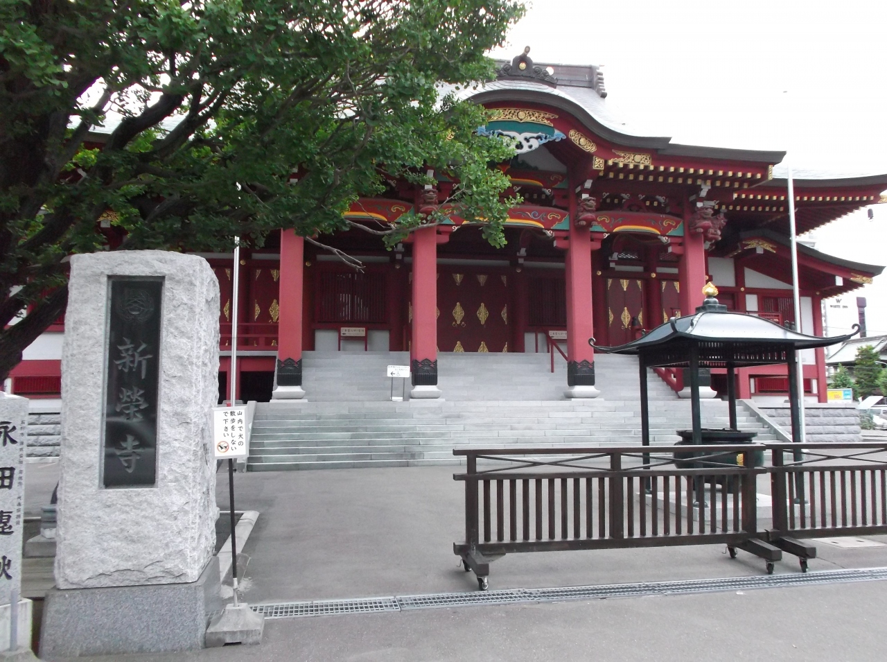 成田山札幌別院の寺標があり、千葉県の成田山新勝寺の別院であることがわかります。
