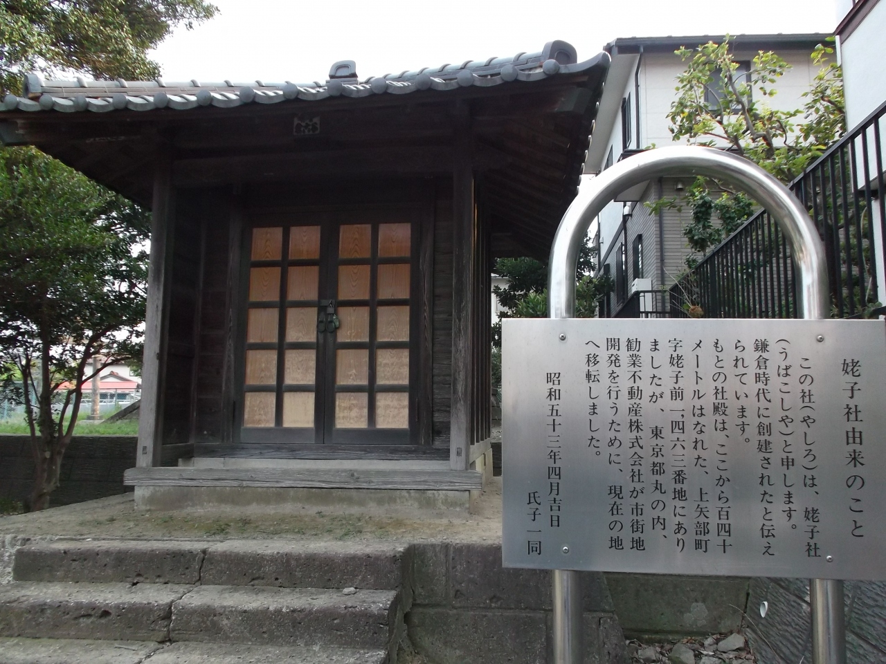 上矢部町の新興住宅地の中にあります。日月社と姥子社は同じ場所に鎮座しています。道路から一段高いところに整備されています。ご当地の開発により元のところから移転とのこと現代事情です。日月社には鳥居がありますが姥子社にはありません。また、中間部に石造物が集められていましたが、一部崩されていました(悪戯か自然かは不明)。