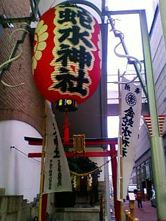 ここ一番町4丁目商店街通り、三越のところにあります。大きな提灯と赤い鳥居でわかります。蛇が刻まれている石が置かれています。建物(三越)の片隅に祠があり、商店街の人でしょうか、お参りする姿を見かけます。- 旅行時期