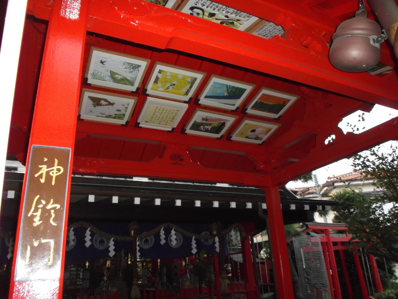 神りん門の天井には漫画家原ともえさんの献上作品が描かれていました。境内には小さな祠ですが命婦大神も祀られています。天道真心の塔や休憩所・社務所小屋もあり、ちょっとした隠れスポット的です。- 旅行時期