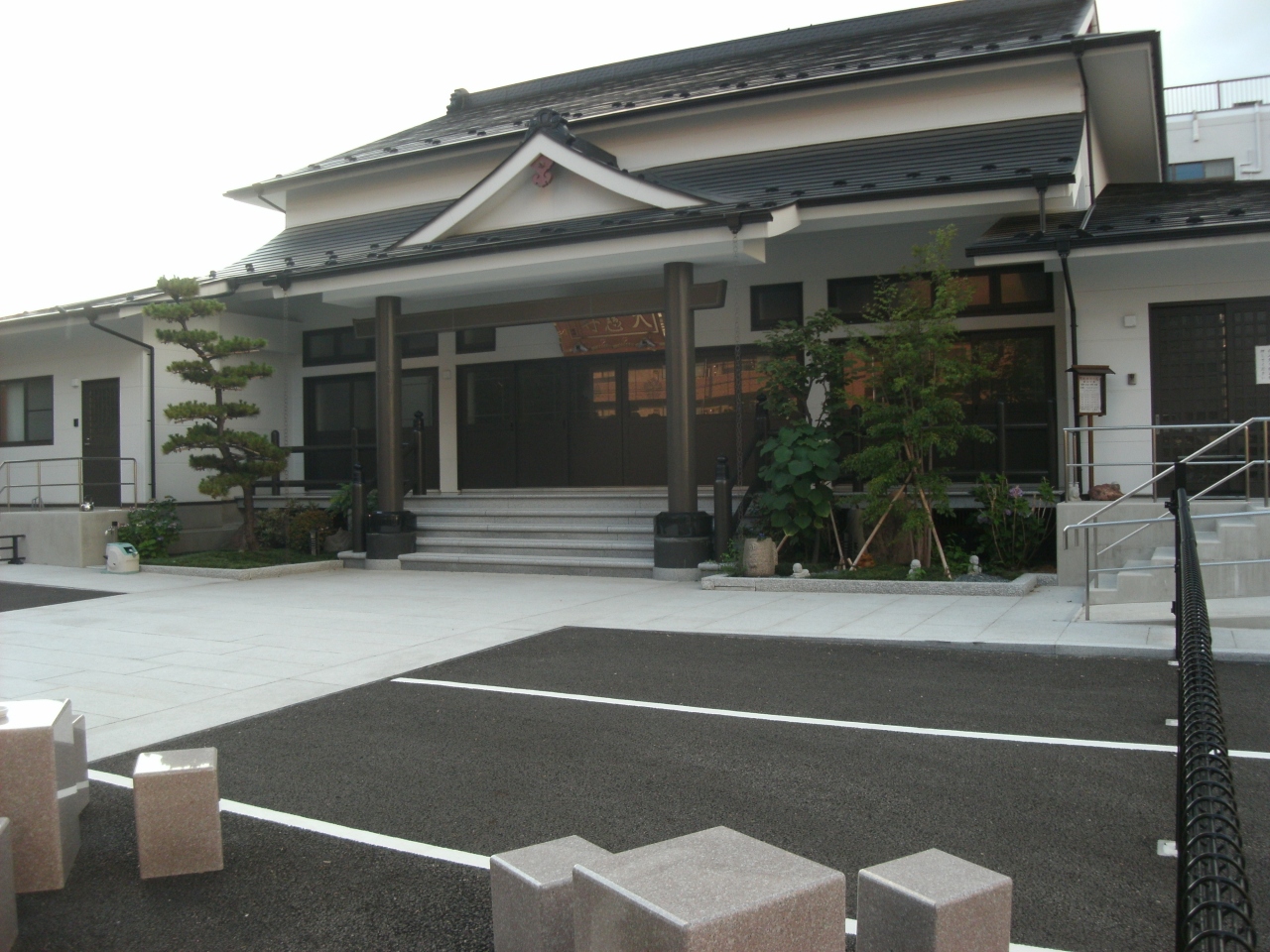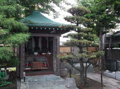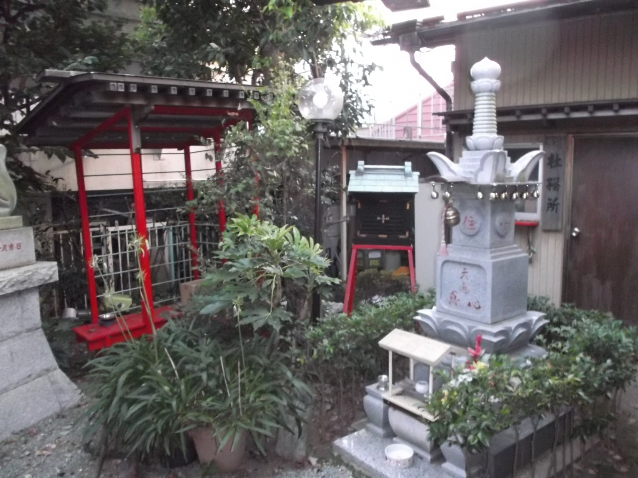 ブルーライン踊場駅下車徒歩10分足らずのところにあります。住宅街の通り沿いの一角に。入口には水掛地蔵の小堂(社)があります。