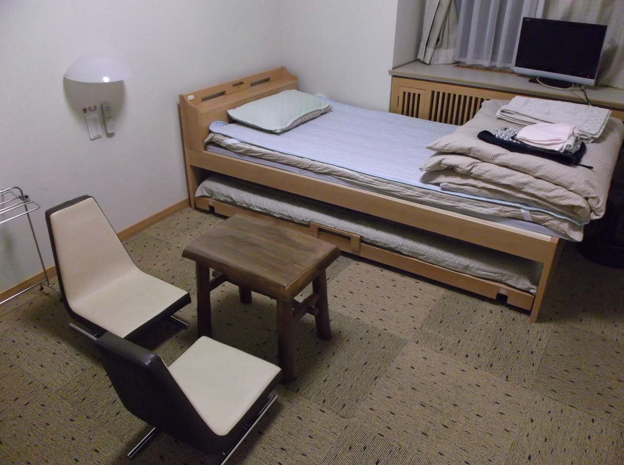 吹き抜けの空間には休憩用の机椅子スペースが余裕もってあります。旅人にはありがたいところです。