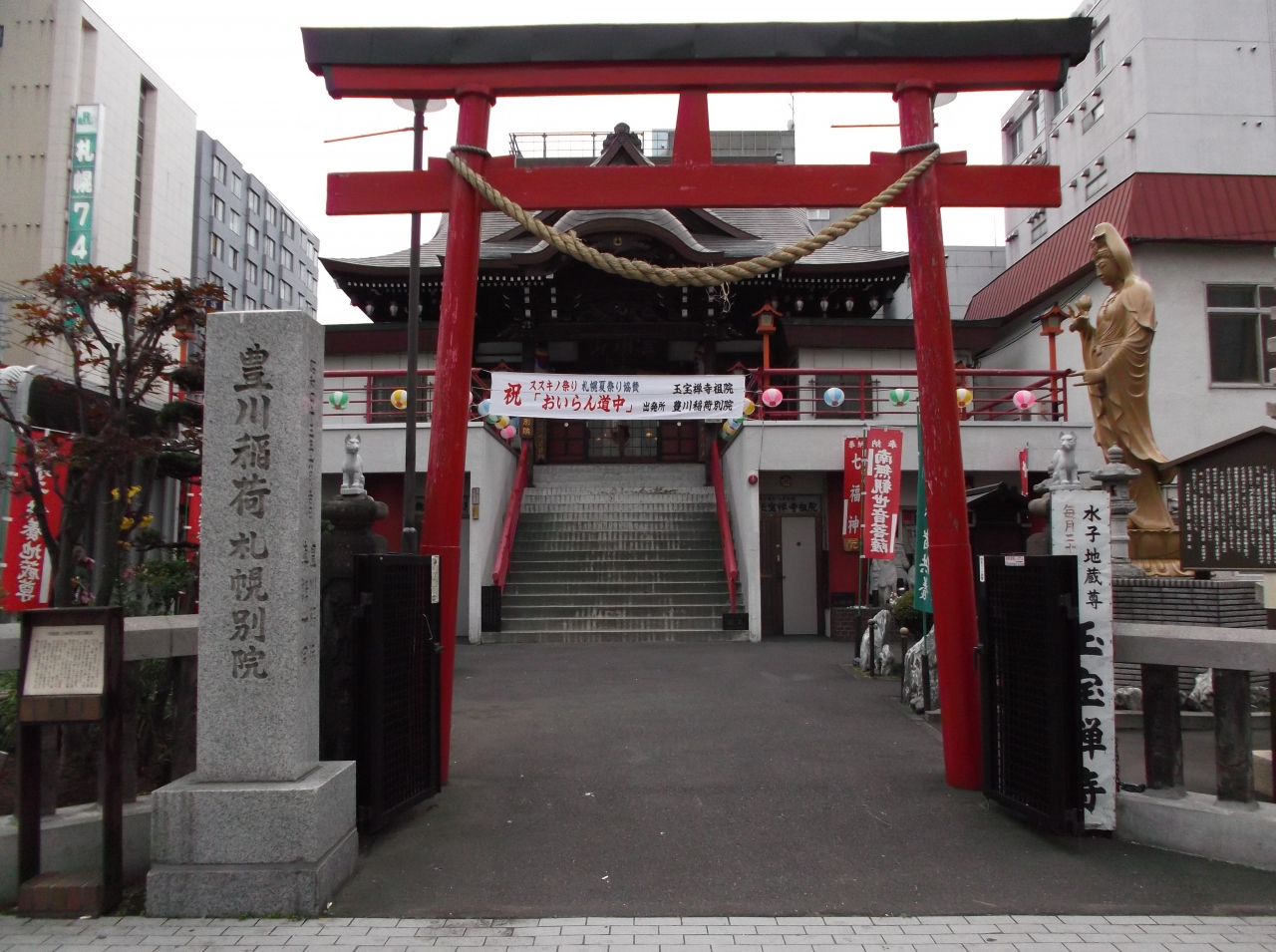 すすきのにあります。豊川稲荷の別院とありますが、玉宝禅寺という寺院と一緒。本堂、社(拝)殿??・・といった感じ。水子地蔵尊、観音様、あれ七福神勢ぞろい、参道の小堂には恵比寿さんと大黒天さんが祀られていました。明治以降いろんな歴史を持ってるようです。そのあたりの薀蓄は寺社探訪者の方に譲ります。