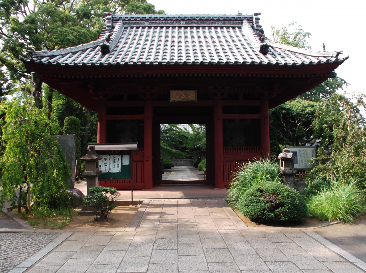 通りから山門が真っ直ぐ伸びた先に仁王門、古木に覆われた境内の本堂前は手入れされた樹木が美しい。ここのイトヒバは名木古木。日蓮宗らしく題目塔がありました。- 旅行時期