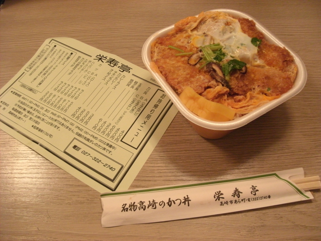 ここのクチコミが高く(5が三つ)評判(旅行記)のお店、旨くて安い・・カツ丼の名店だよって聞いてはいましたので、行ってみました。店内はカウンターのみ10席はあろうか、この日は若者で満席状態。お持ち帰りもできるのでカツ丼B(玉子ひき)を注文しました。