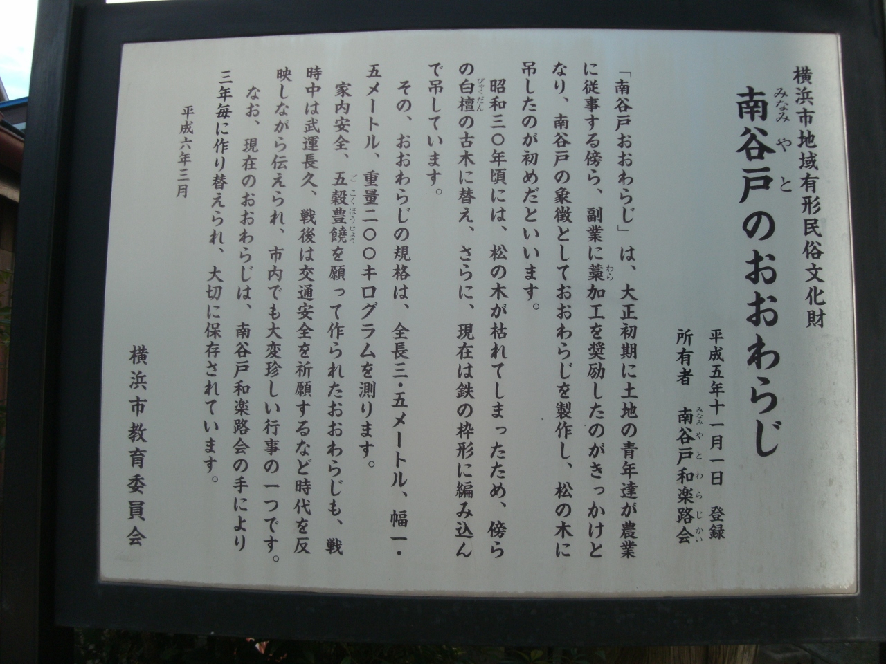 旅人らの道中安全祈願に由来し大正初期から作られるようになったとさ。今は数年に一度地元保存会青年らで作り変えられているという。素材のワラを集めるだけでも大変らしいですよ。なにせ、全長3.5m・幅1.5m・重さ200kgとあります。