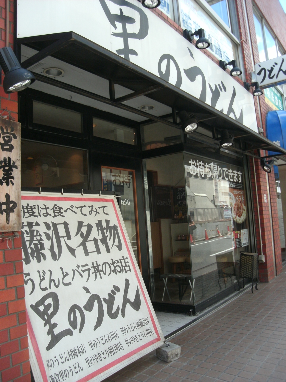 横浜の戸塚原宿交差点(国道1号)に大きな看板あります。里のうどん・・関西うどんとバラ丼のお店です。ここのバラ丼が藤沢名物、藤沢市内のお店で味わうことできます。鎌倉のお店ですと湘南名物と名を変えますが同じようです。