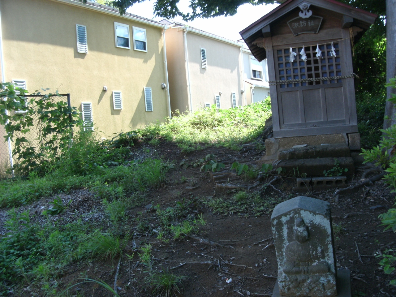周りは住宅・新しい集合住宅やらマンション群。小高い境内から、目と鼻の先に御宅の窓が・・住人と目頭合ったら「こんにちわ!」ですかね。