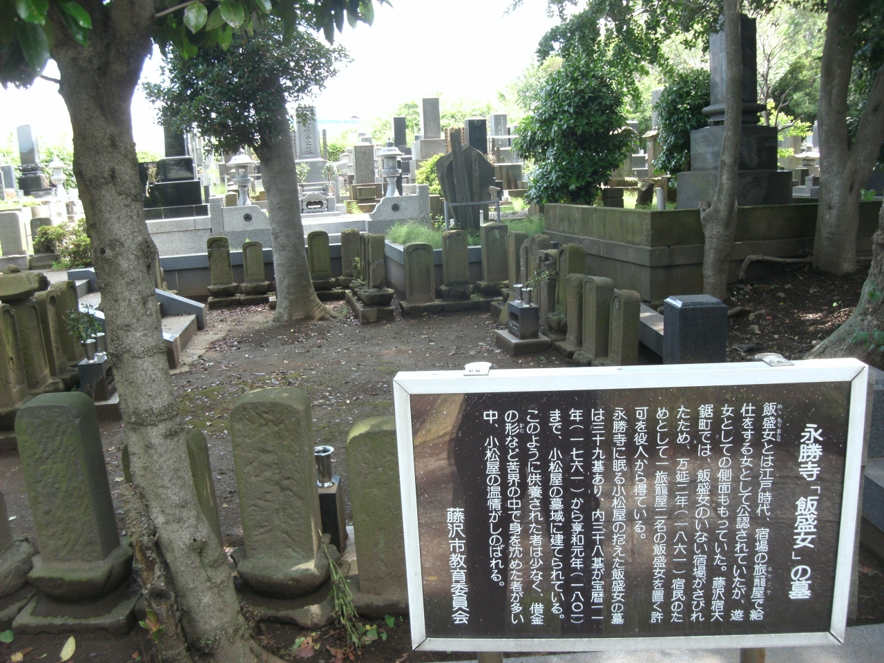 山門入った左手にその墓群があります。39基に48体の法名が刻まれているとのこと(5体は男)。しかしながら、時代の風雪で崩れたり欠けたりしています。藤沢宿の旅籠のご主人・小松屋源蔵の温情で供養されたとあります。歴史を感じられるお寺です。