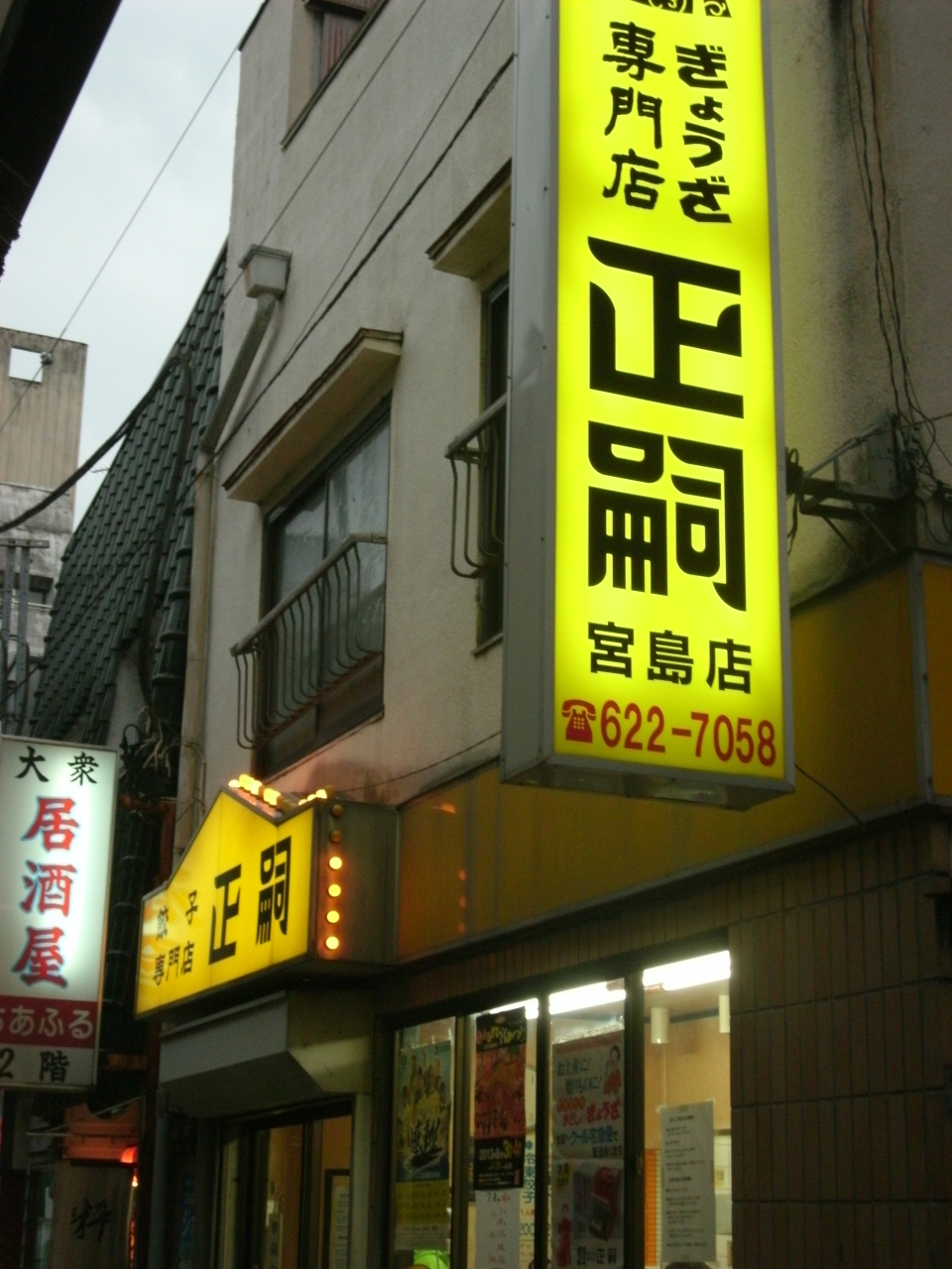 ここ「ぎょうざ専門店正嗣」の宮島店(馬場通り4丁目・二荒山神社近く・大通りから中に入る飲食街路)。地元民太鼓判の餃子のお店。餃子以外お水(お冷)しかありません。焼き餃子と水餃子、お土産冷凍餃子。カウンターのみ、10人ちょっとで満席で時間帯により行列つくります。お子さん・女性客、みなさん地元の方でしょうか・・ここ!ここ!って騒いでいるのは観光客でしょう。